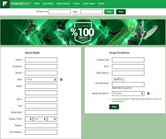 Forvetbet hesap açma kayıt olma üyelik